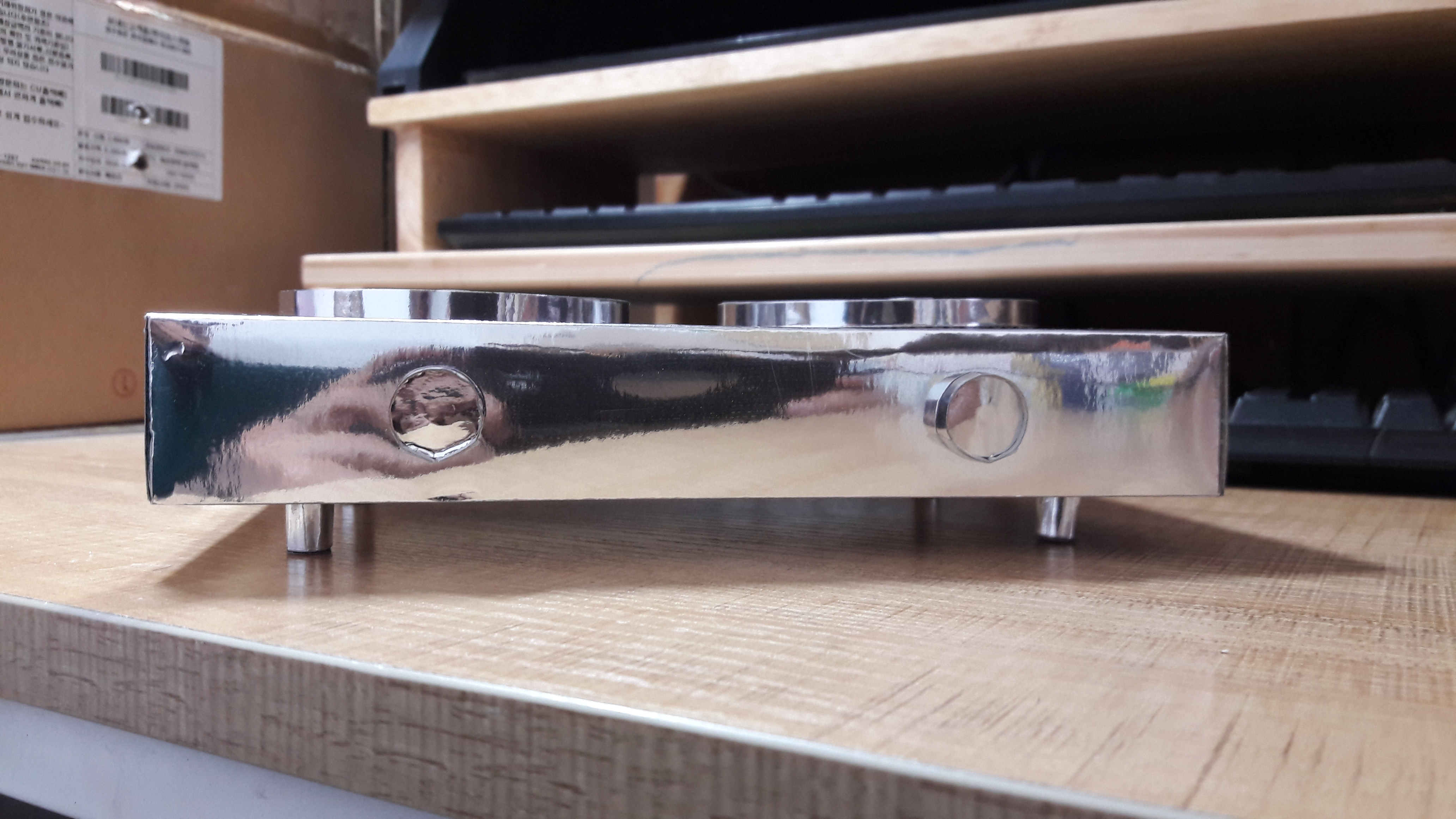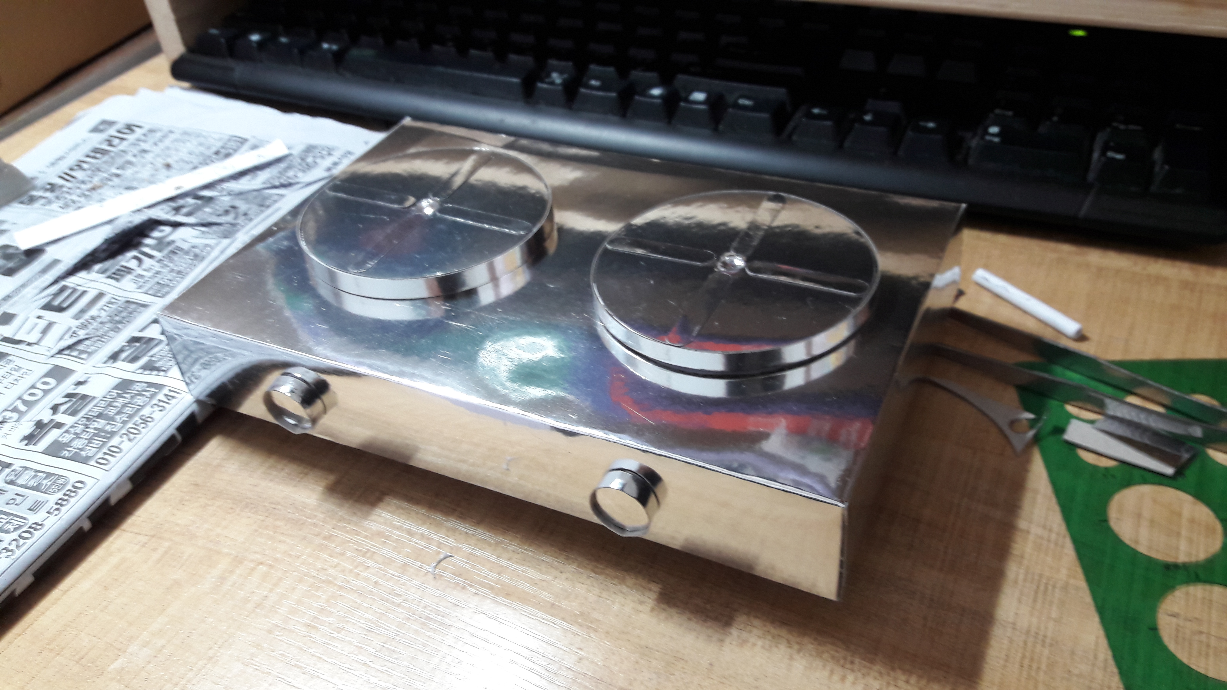 이렇게 해서 가스레인지에 다리와 불 조절 버튼을 완성하였습니다 이제 이것을 가스레인지 기본 박스 위에 구멍을 뚫고 본드를 붙여서 쑥 끼워넣어 주기만 하면 돼요