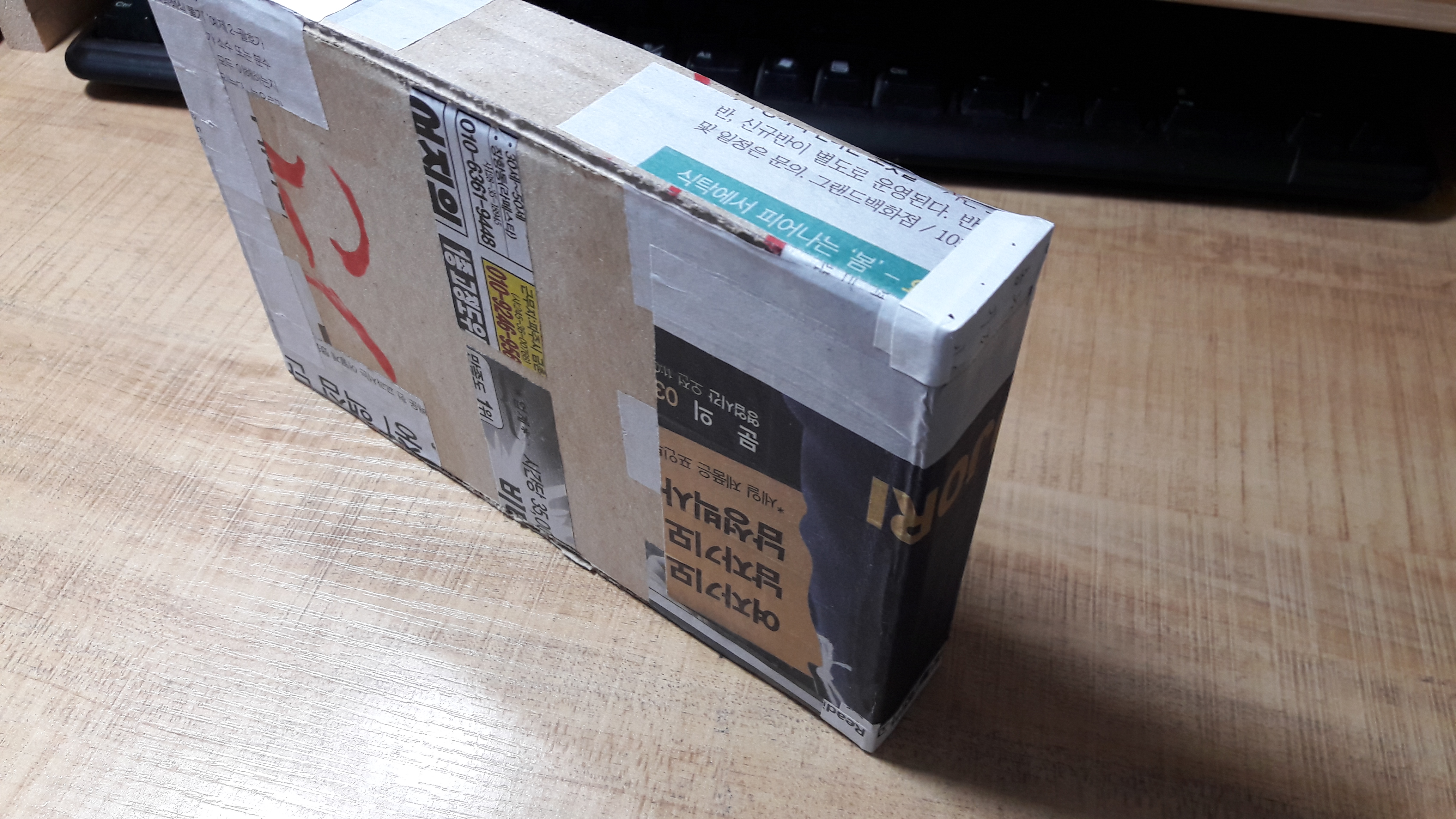 그리고 감면을 골판지 박스를 잘라서 붙여 주는 것이지요 처음부터 골판지 박스로 해도 괜찮지만 이렇게 할 경우에 구조 자체가 아주 튼튼해서 쉽게 찌그러지거나 망가지지 않습니다 신문지를 사용하여 이어붙이는 이유는 신문지 자체가 열기 때문에 종이에 듣기로 인해서 최종 결과물이 높낮이가 달라지는 것을 방지하기 위함입니다